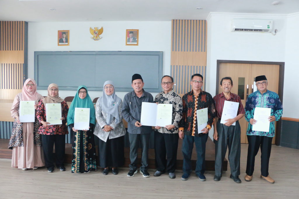 Bagian Kepegawaian Institut Agama Islam Negeri (IAIN) Syekh Nurjati Cirebon melaksanakan kegiatan penyerahan Surat Keputusan (SK) kenaikan pangkat berjumlah 101 pegawai di lingkungan IAIN Syekh Nurjati Cirebon yang dihadiri oleh Prof. Dr. H. Aan Jaelani, M. Ag (Rektor), Ir. Sunarini, M. Kom (Kepala Biro AUAK), Hj. Siti Yayah Nurhidayah (Analis Kepegawaian) dan panitia. Kegiatan tersebut diikuti oleh tenaga kependidikan dan pendidik yang naik pangkat periode 01 Oktober 2023 bertempat di aula gedung rektorat lantai 3. Rabu (04/10/2023)