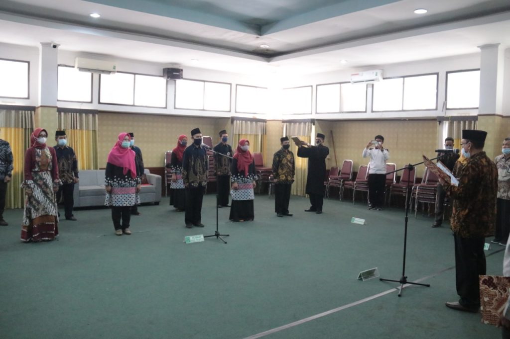 Dr. Hj. Yayah Nurhidayah, M.Si (Sub Koordinator Kepegawaian), menjelaskan, 11 (sebelas) pegawai yang dilantik dan diambil sumpahnya itu, dua di antaranya adalah Widodo Winarso M.Pd.I (dosen di FITK) dan Dr Wardah Nuroniyah M.S.I (dosen di FSEI). Keduanya mendapatkan Kenaikan jabatan fungsional sebagai Lektor Kepala. Kemudian 7 orang pegawai Arsipatoris, 1 orang Analis Kepegawaian Ahli Muda dan 1 orang lainnya sebagai Pranata Laboratorium di Pendidikan FSEI. “Itulah 11 nama pegawai yang mengikuti prosesi pelantikan dan pengambilan sumpah jabatan. Kemudian dilanjutkan dengan penandatangan pakta integritas, dan selanjutnya penyerahan secara simbolis SK Menteri Agama tentang pengangkatan dalam jabatan.“