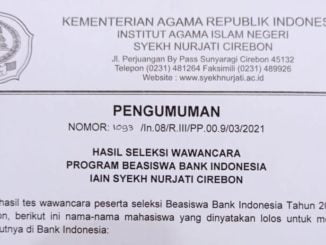 UNDUH PENGUMUMAN HASIL SELEKSI BEASISWA BI IAIN SYEKH NURJATI CIREBON