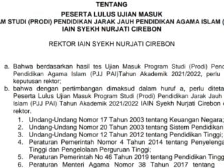 SK Kelulusan UPJJ PAI IAIN Cirebon Tahun 2021