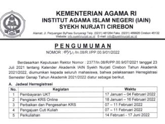 Pengumuman Pembayaran UKT IAIN Syekh Nurjati Cirebon Tahun 2022 17 Januari 2022 arifin 0 Unduh Pengumuman PENGUMUMAN PEMBAYARAN UKT SMT GENAP 2021-2022