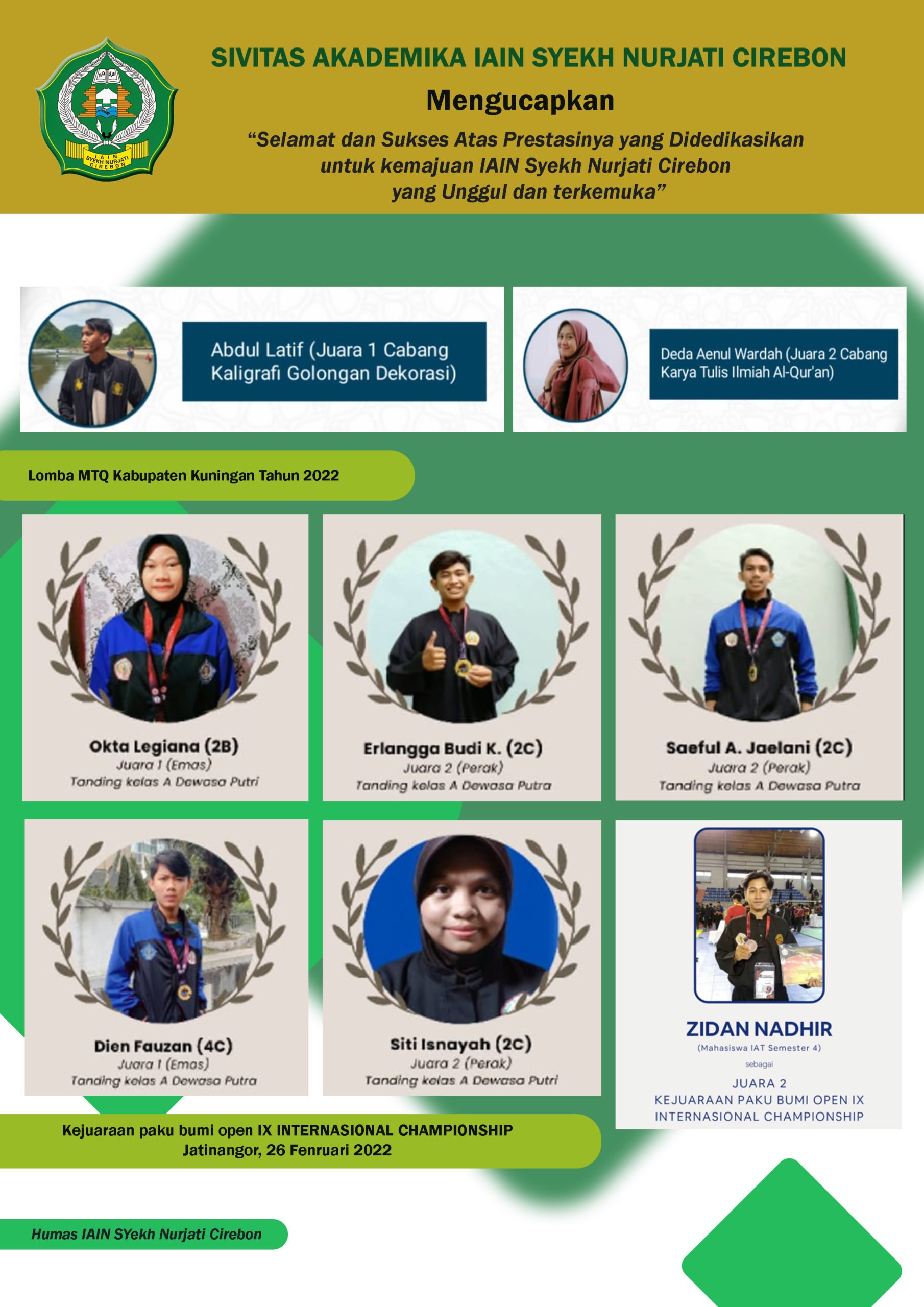 9 March 2022 • Mahasiswa IAIN Syekh Nurjati Cirebon Torehkan Medali pada Kejuaraan Lomba Tingkat Nasional dan Internasional Berita