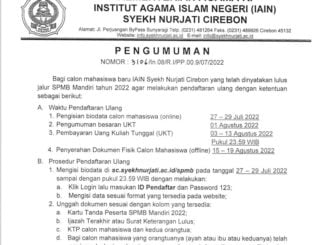 PENGUMUMAN HERREGRISTRASI SPMB MANDIRI IAIN SYEKH NURJATI CIREBON 2022 27 Juli 2022 arifin 0 Unduh Dokumen PENGUMUMAN HERREGRISTRASI SPMB MANDIRI 2022