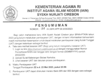 Pengumuman Perpanjangan Pembayaran UKT Jalur SPAN PTKIN Tahun 2023