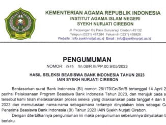PENGUMUMAN PENERIMA BEASISWA BI EXISTING TAHUN 2023 IAIN SYEKH NURJATI CIREBON