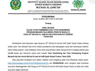 HASIL SELEKSI CALON TUTOR PEMBIMBING DAN TUTOR PENDAMPING PROGRAM MANASIK HAJI-UMROH (PRAKTIK IBADAH 2) PADA UPT MA’HAD AL-JAMI’AH IAIN SYEKH NURJATI CIREBON TAHUN 2024