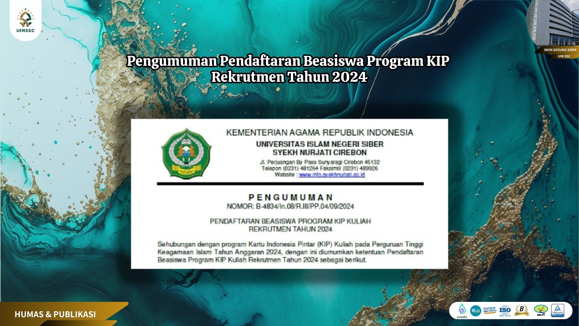 1 October 2024 • Pengumuman Pendaftaran Beasiswa Program KIP Rekrutmen Tahun 2024 Untuk Informasi Selengkapnya Silahkan Unduh Link dibawah ini : B-4834_Pengumuman Pendaftaran KIP 2024 (300924) jadi... Informasi Pengumuman