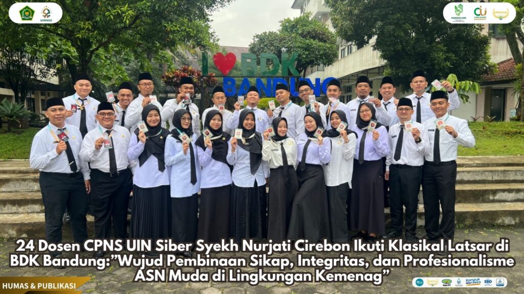 UIN Siber Cirebon (Bandung) – Sebanyak 24 dosen CPNS Universitas Islam Negeri (UIN) Siber Syekh Nurjati Cirebon mengikuti kegiatan Klasikal Pelatihan Dasar (Latsar) CPNS Angkatan 26, 27, dan 28 di Balai Diklat Keagamaan (BDK) Bandung. Kegiatan ini merupakan bagian penting dari rangkaian pelatihan dasar CPNS 2024 yang berlangsung selama tiga bulan, sebagai bentuk pembinaan sikap, perilaku, dan penguatan nilai-nilai dasar ASN.