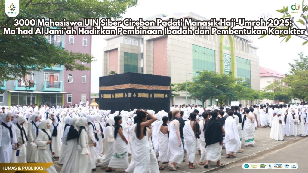 UIN Siber Cirebon — Suasana religius dan khidmat menyelimuti halaman Ma’had Al Jami’ah dan Gedung Rektorat Universitas Islam Negeri (UIN) Siber Syekh Nurjati Cirebon, atau yang lebih dikenal sebagai Cyber Islamic University (CIU), dalam pelaksanaan Praktik Manasik Haji dan Umroh Tahun 2025. Kegiatan besar ini diikuti oleh lebih dari 3.000 mahasiswa lintas program studi, menjadikannya salah satu praktik manasik terbesar di lingkungan Perguruan Tinggi Keagamaan Islam Negeri (PTKIN).
