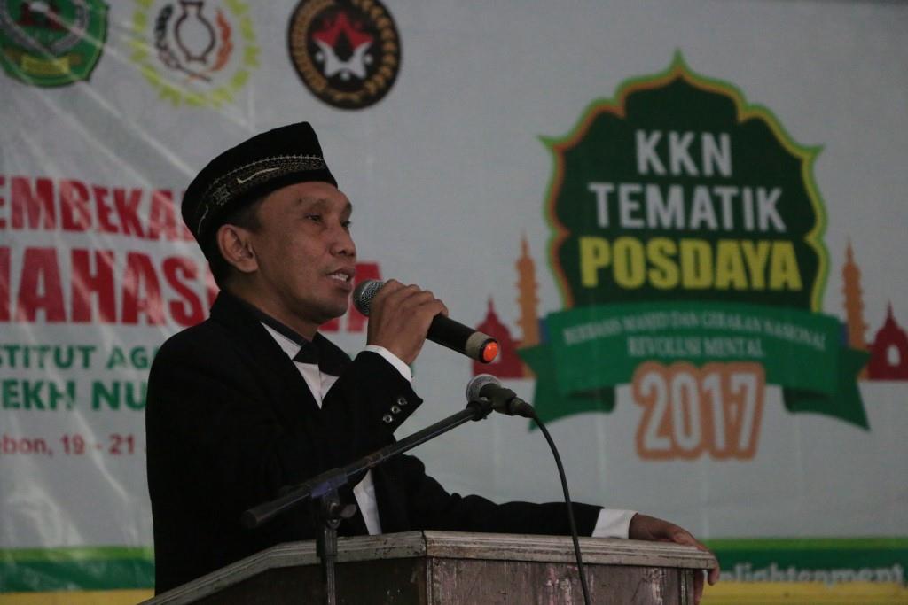 Dr.H. Bambang Yuniarto,M.Si (Ketua LPPM) IAIN Sykeh Nurjti Cirebon memberikan sambutan dan pengarahan kepada 1.462 calon peserta KKN 2017 di Gedung Auditorium ICC Senin (19/6)Dr. H. Sumanta, M. Ag (Rektor IAIN Syekh Nurjti Cirebon) memberikan sambutan dan pengarahan, sekaligus membuka secara resmi pembekalan KKN kepada calon peserta KKN 2017 di Gedung Auditorium ICC Senin (19/6)H. Ahmad Yani, M.Ag, menyampaikan materi tentang Tujuan dan sasaran dan terget KKN Tematik POSDAYA Berbasis Masjid (Pembentukan Posdaya) dan KKN Revolusi Mental, kepda 1.462 calon peserta KKN di Gedung Auditorium ICC Senin (19/6)