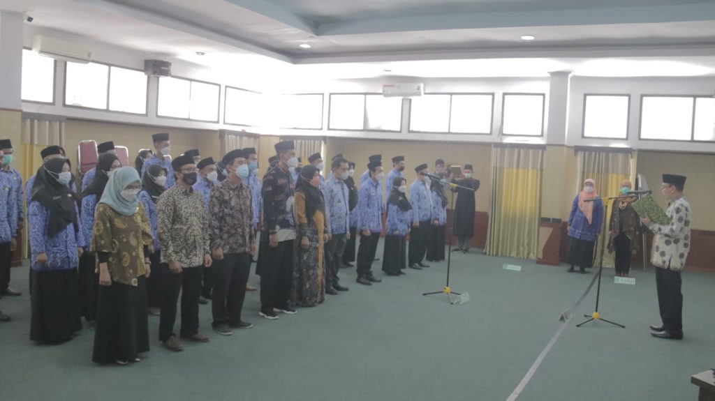 Rektor IAIN Syekh Nurjati Cirebon, Dr. H. Sumanta, M.Ag melantik 42 pejabat fungsional dan PNS di Aula Rektorat kampus setempat. Pelantikan disaksikan Ir. Sunarini, M.Kom (Kepala Biro) dan Dr. Kartimi, M.Pd (Warek II) dan unsur pimpinan di lingkungan IAIN Syekh NUrjati Cirebon. Rabu (26/01/22)