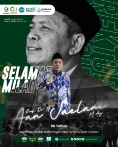 Hari ini, di usia emasnya, kita merayakan milad ke-50 Prof. Dr. H. Aan Jaelani, M.Ag — Rektor UIN Siber Syekh Nurjati Cirebon. Sebuah sosok yang bukan hanya memimpin, tapi menginspirasi. Di bawah bimbingannya, kita menyaksikan sejarah yang tertoreh: transformasi kelembagaan dari IAIN menjadi UIN, yang resmi terjadi pada 21 Mei 2024. Sebuah langkah monumental yang menandai babak baru perjalanan institusi ini.