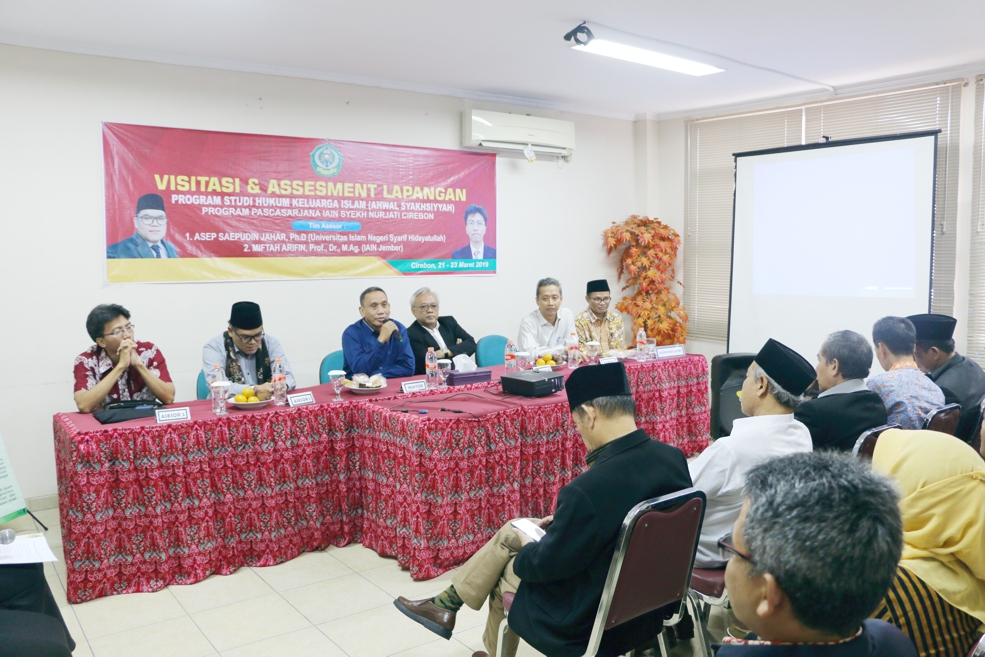 Jurusan Hukum Keluarga Islam (HKI) Strata S2 Fakultas Pascasarjana IAIN Syekh Nurjati Cirebon menggelar Visitasi dan Asessment Lapangan Jurusan Hukum Keluarga Islam (HKI) Strata S2, kegiatan tersebut diadakan di Ruang Dosen Gedung Pascasarjana. Asessor yang menilai Ph. D. Asep Saepudin Jahar, M.A (UIN Syarif Hidayatullah Jakarta) dan Prof. Dr. Miftah Arifin, M.Ag (IAIN Jember). Jum’at (22/03).