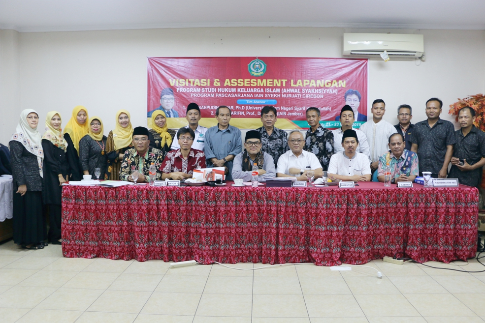 Kegiatan visitsasi dihadiri Dr. H. Sumanta, M.Ag (Rektor), Dr. Saefudin Zuhri, M.Ag (Warek I), Dr. H. Adib, M.Ag (Warek II), Dr. H. Subarja, M. Ag (Kepala Biro AUAK), Prof. Dr. Jamali, M.Ag (Guru Besar), Prof. Dr. H. Dedi Djubaedi, M. Ag (Direktur Pasacasarjana), Dr. H. Aan Jaelani, M.Ag (Dekan Fakultas Syaria Ekonomi Islam -FSEI), Dr. Hj. Septi Gumiandari, M.Ag (Ketua LPM), para guru besar Fakultas Pascasarjana, Staff dan alumni. Tujuan kegiatan ini adalah untuk asessment lapangan Jurusan Hukum Keluarga Islam Strata S2 Fakultas Pascasarjana IAIN Syekh Nurjati Cirebon oleh BAN PT, mendapatkan masukan dan umpan balik dari asessor dalam rangka perbaikan kualitas Jurusan dari berbagai aspek.