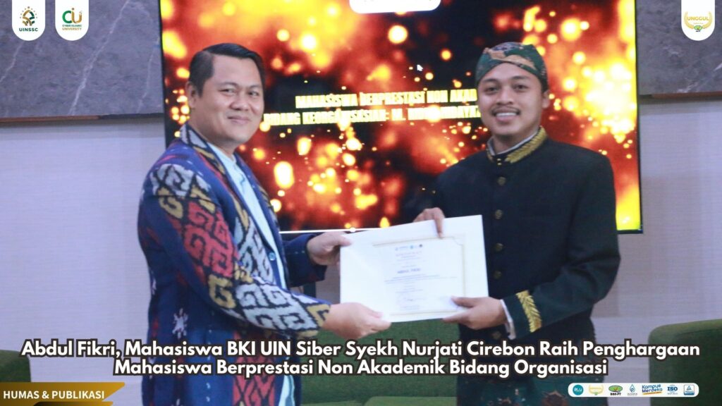 UIN Siber Cirebon — Prestasi membanggakan kembali diraih mahasiswa UIN Siber Syekh Nurjati Cirebon. Abdul Fikri, mahasiswa Program Studi Bimbingan dan Konseling Islam (BKI), berhasil menyabet predikat Mahasiswa Berprestasi Non Akademik Bidang Organisasi pada acara Pelepasan Mahasiswa Fakultas Dakwah dan Komunikasi Islam (FDKI) yang digelar Rabu (6/8/2025) di Auditorium Lantai 4 FDKI.