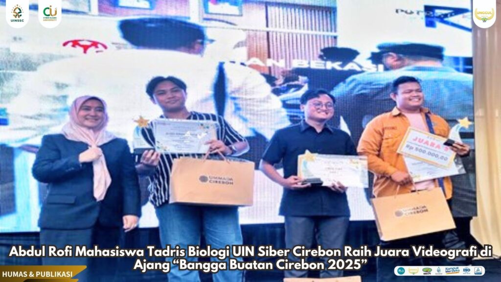 UIN Siber Cirebon – Kebanggaan tersendiri kembali hadir dari dunia akademik Kota Cirebon. Mahasiswa Program Studi Tadris Biologi, Fakultas Ilmu Tarbiyah dan Keguruan, UIN Siber Syekh Nurjati Cirebon, Abdul Rofi, sukses menorehkan prestasi gemilang dalam ajang Lomba Videografi Bangga Buatan Cirebon 2025, yang berlangsung di area Mall UKM DKUKMPP Kota Cirebon, pada 18–20 Juni 2025.