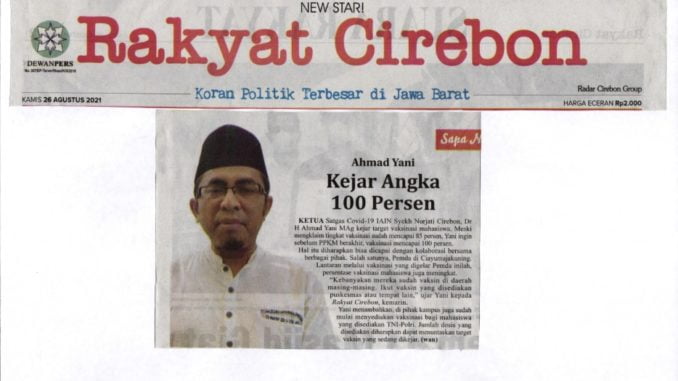 Ahmad Yani Kejar Angka 100 Persen (Rakyat Cirebon/26 Agustus 2021) 13 Oktober 2021 arifin Kliping Digital 0 Ahmad Yani Kejar Angka 100 Persen