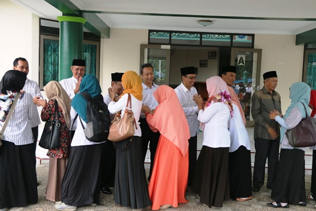 Senin, 3 Juli 2017. Pasca liburan Hari Raya Idul Fitri 1438 H, Keluarga besar IAIN Syekh Nurjati Cirebon memulai aktivitas diawali dengan menyimak sambutan Rektor IAIN Syekh Nurjati Cirebon, dalam hal ini diwakili oleh Dr. H. Farihin, M.Pd selaku wakil rektor III. Dalam kesempatan kali ini Dr. H. Farihin, M.Pd menyampaikan beberapa amanat dan informasi yang diantaranya tetap menjaga ukhuwah Islamiyah, meningkatkan etos kerja melalui pelayanan prima di bidang masing-masing. Kemudian dilanjutkan dengan acara ramah tamah keluarga besar IAIN Syekh Nurjati Cirebon di halaman Rektorat. Pada kesempatan kali ini pula IAIN Syekh Nurjati Cirebon kedatangan tamu dari Inspektorat Jendral guna kepentingan Inspeksi mendadak (sidak) ASN di lingkungan Kementerian Agama Republik Indonesia pasca cuti bersama Hari Raya Idul Fitri 1438 H.