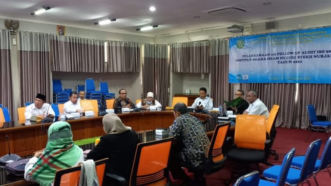 Lembaga Penjaminan Mutu (LPM) Institut Agama Islam Negeri (IAIN) Syekh Nurjati Cirebon menggelar pendampingan kegiatan Audit ISO 9001:2015 pada IAIN Syekh Nurjati Cirebon yang dilaksanakan selama dua hari, Selasa-Rabu tanggal 06-07 Desember 2022 bertempat di aula gedung senat rektorat lantai2. Dalam kegiatan tersebut dihadiri oleh Rektor IAIN SNJ Cirebon Dr. H. Sumanta, MAg, para Warek, Kabiro, LPM, Para Dekan, Direktur Pasca, Kajur, ketua Lembaga/unit dan beberapa dosen IAIN SNJ Cirebon. Kegiatan Asasmen Lapangan (AL) sertifikasi ISO 9001:2015 ini dengan sasaran audit manajeman di lingkungan IAIN SNJ Cirebon. Bertindak sebagai Auditor ISO, hadir dua auditor, yakni Bapak Agustani Bustami sebagai Lead Auditor yang hadir secara langsung dan Bapak Rian Antaresna sebagai auditor yang melakukan audit via remote audit. Selasa-Rabu (6-7/12/22)