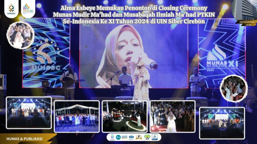 UIN Siber Cirebon – Closing Ceremony Musyawarah Nasional (Munas) Mudir Ma’had dan Musabaqah Ilmiah Ma’had PTKIN Se-Indonesia Ke XI Tahun 2024 yang berlangsung di UIN Siber Syekh Nurjati Cirebon sukses diguncang oleh penampilan memukau vokalis grup musik religi Indonesia, Ummu Salamah. Pada Kamis malam, penyanyi muda yang juga dikenal dengan nama panggung Alma Esbeye ini, berhasil menghipnotis ratusan peserta munas dengan suara merdunya.