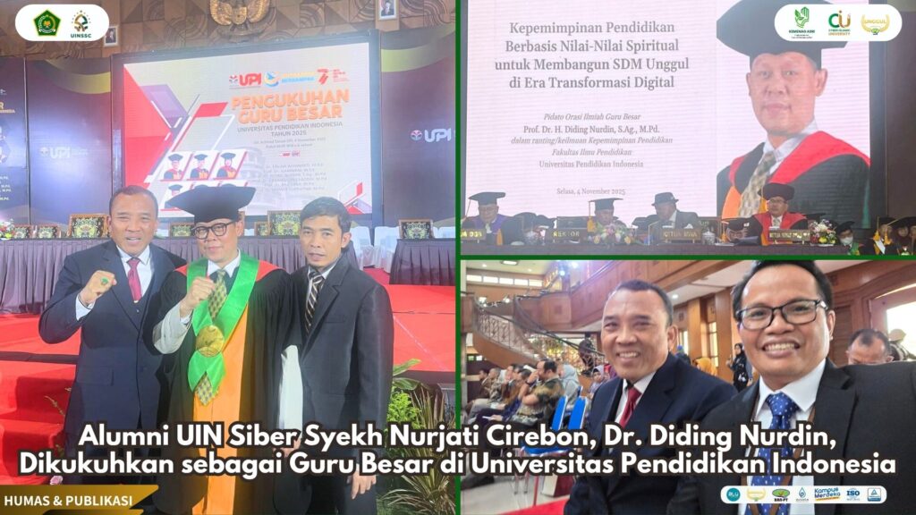 UIN Siber Cirebon (Bandung) — Kebanggaan kembali mengalir bagi sivitas akademika UIN Siber Syekh Nurjati Cirebon. Salah satu alumninya, Dr. Diding Nurdin, resmi dikukuhkan sebagai Guru Besar di Universitas Pendidikan Indonesia (UPI). Pencapaian ini bukan hanya menjadi prestasi pribadi, tetapi juga bukti nyata kualitas lulusan UIN Siber Syekh Nurjati Cirebon yang mampu bersaing di tingkat nasional maupun internasional. (30/10).