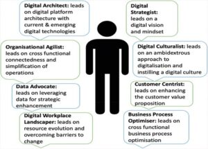 Pada sisi lain, ahli strategi digital mampu menciptakan visi untuk transformasi digital secara top-down dalam implementasi di seluruh unit kampus, bertanggung jawab atas kemitraan strategis yang berfungsi dengan baik dan kolaboratif antara sistem informasi dan kepemimpinan bisnis untuk mengadaptasi transformasi digital. Ahli strategi digital bertugas menciptakan nilai dan meningkatkan proposisi nilai pemangku kepentingan di banyak organisasi dan meningkatkan transparansi melalui digitalisasi di setiap tahap implementasinya dan dengan kekuatan instrumentasi, para pemimpin akan memimpin dan mengelola perguruan tinggi dengan menggunakan digitalisasi.
