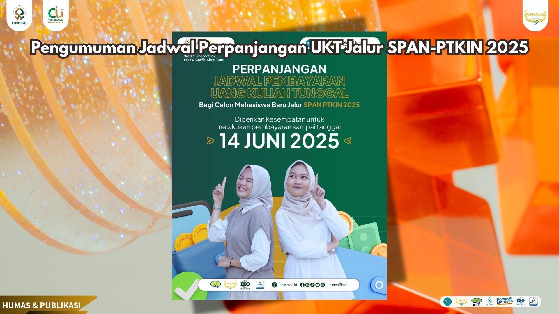 5 June 2025 • Pengumuman Jadwal Perpanjangan UKT Jalur SPAN-PTKIN 2025 Untuk Informasi Selengkapnya Silahkan Unduh Link Dibawah ini : Pengumuman PERPANJANGAN UKT 250605 Pengumuman