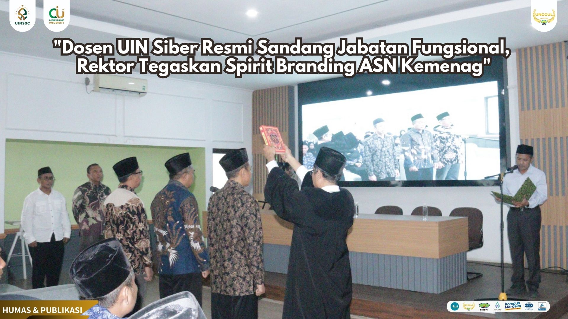 26 May 2025 • UIN Siber Cirebon Kukuhkan Jabatan Fungsional Dosen: Tegaskan Komitmen ASN Berintegritas dan Berdaya Saing Digital UIN Siber Cirebon – Dalam upaya memperkuat tata kelola Aparatur Sipil Negara (ASN) berbasis profesionalisme... Berita Kegiatan Pojok Rektor