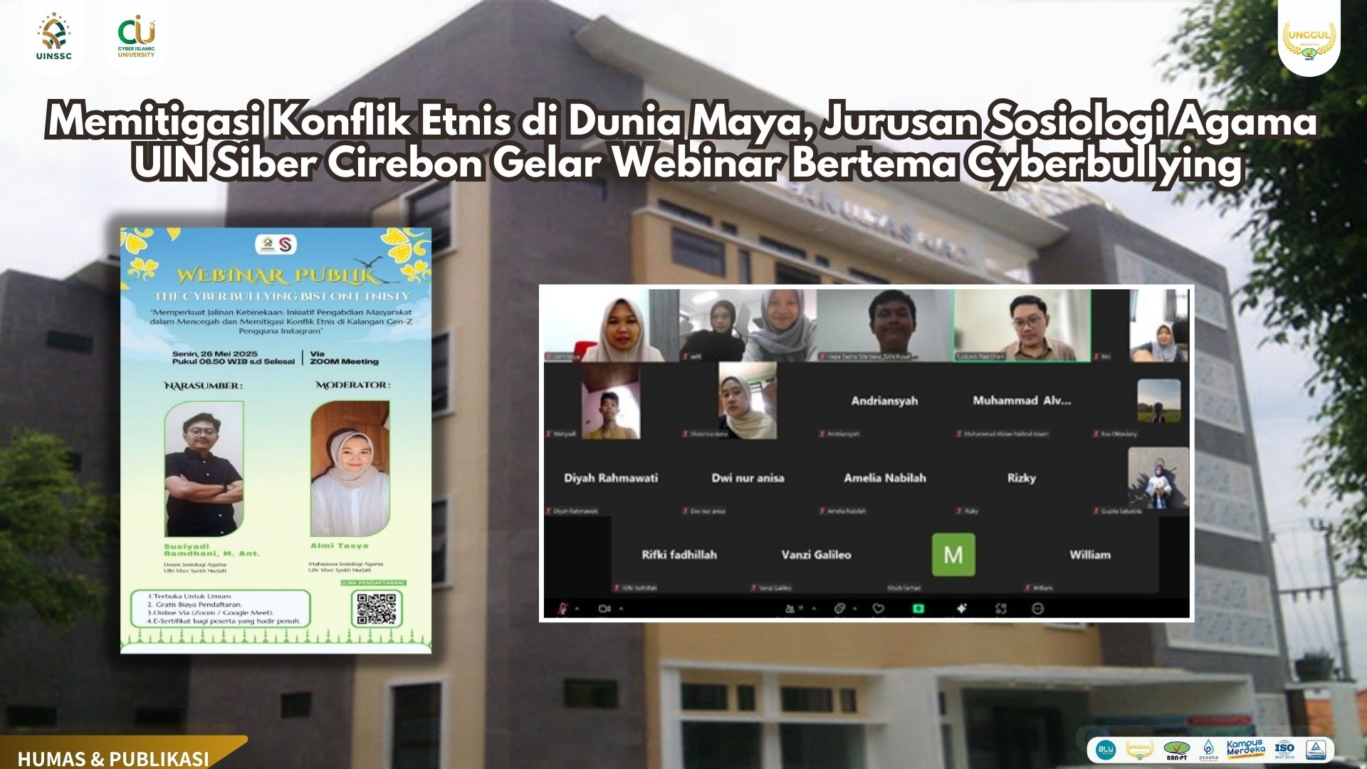 26 May 2025 • Memitigasi Konflik Etnis di Dunia Maya, Jurusan Sosiologi Agama UIN Siber Cirebon Gelar Webinar Bertema Cyberbullying UIN Siber Cirebon — Jurusan Sosiologi Agama, Fakultas Dakwah dan Komunikasi Islam, Universitas Islam Negeri... Berita Kegiatan