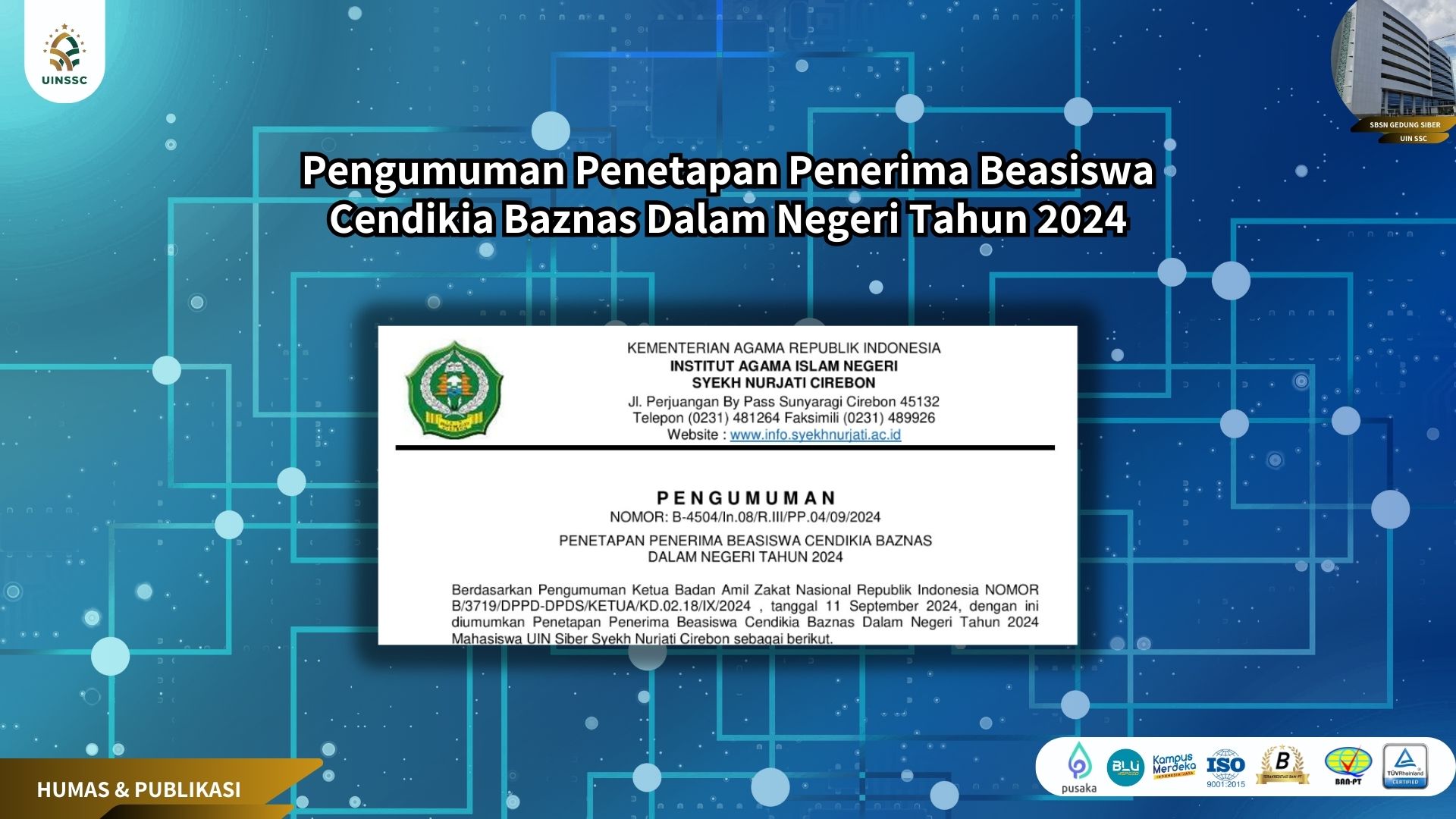 13 September 2024 • Pengumuman Penetapan Penerima Beasiswa Cendikia Baznas Dalam Negeri Tahun 2024 Untuk Informasi Selengkapnya Silahkan Unduh Link dibawah ini : Pengumuman penerima bcb 2024 Informasi Pengumuman