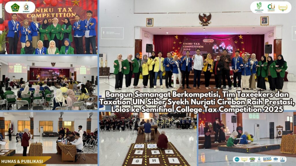 UIN Siber Cirebon (Kuningan) — Prestasi membanggakan kembali diraih oleh mahasiswa UIN Siber Syekh Nurjati Cirebon. Dua tim andalan kampus, yaitu Tim Taxeekers dan Tim Taxation, sukses melaju ke babak semifinal College Tax Competition 2025 dalam ajang UNIKU TAX COMPETITION 2025 yang digelar di Student Center Iman Hidayat, Universitas Kuningan (UNIKU).(02/10).