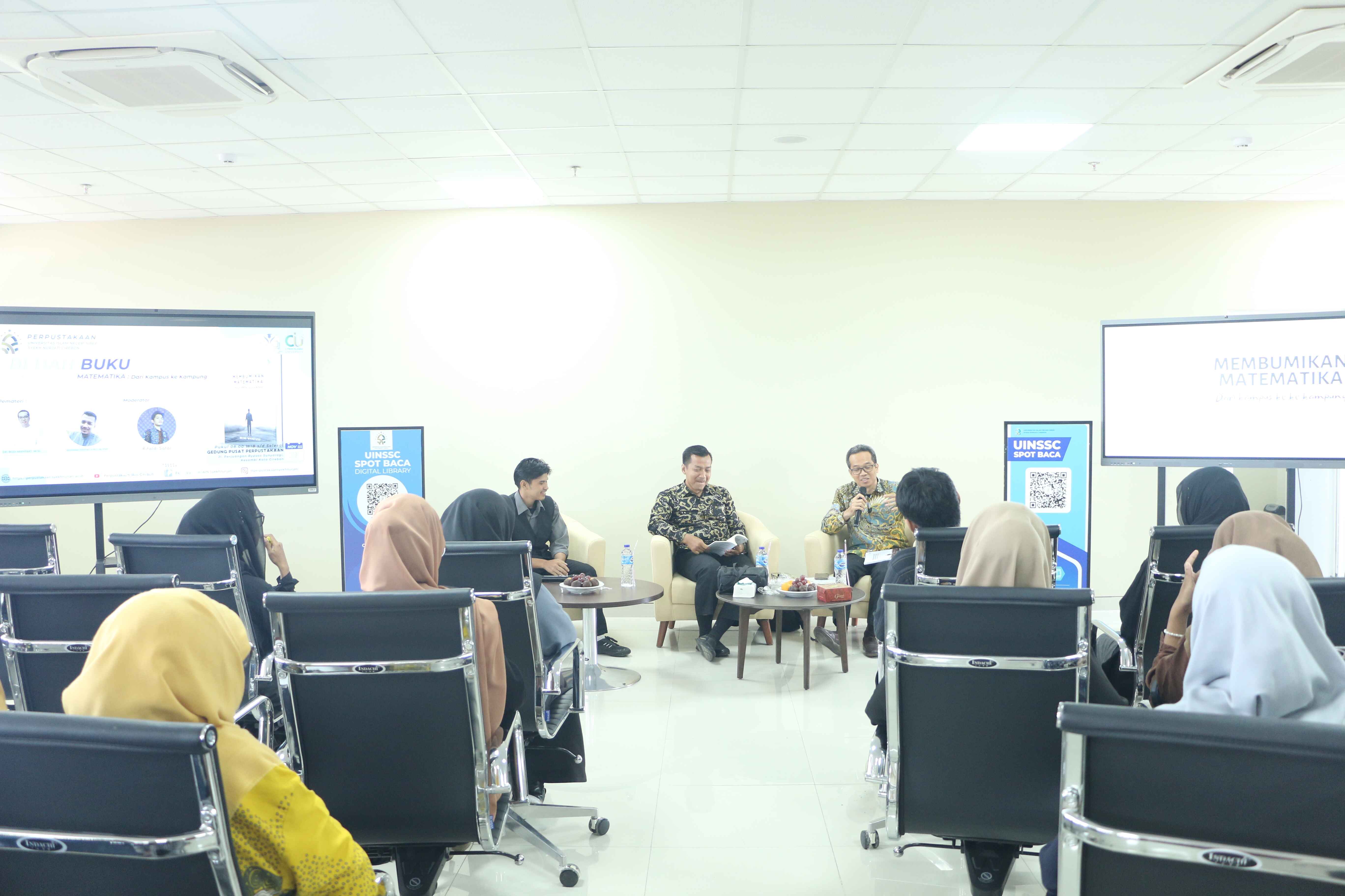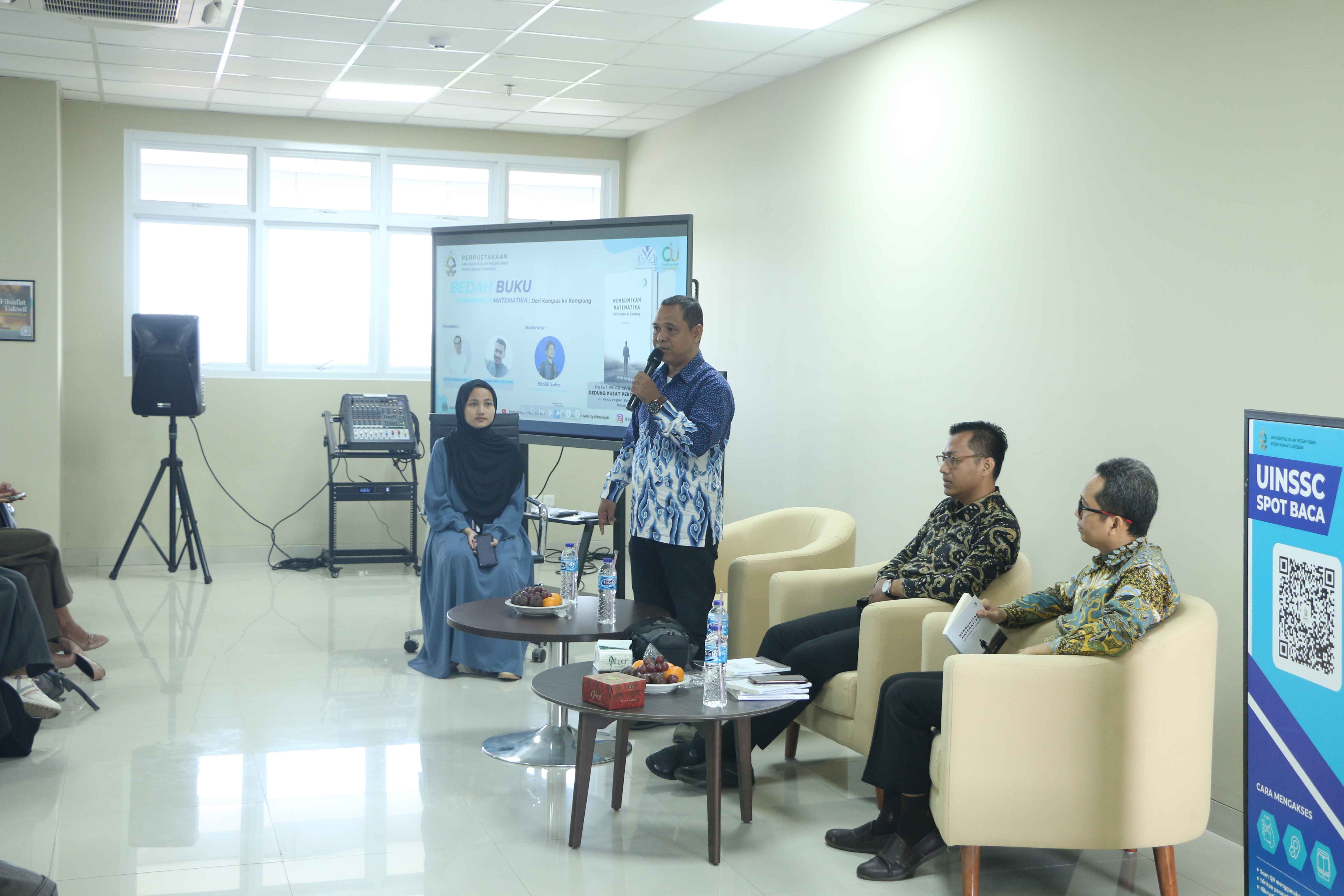 UIN Siber Cirebon – Dalam upaya mempromosikan budaya literasi dan memberikan apresiasi terhadap karya akademik dosen, Pusat Perpustakaan UIN Siber Syekh Nurjati Cirebon, yang dikenal sebagai Cyber Islamic University (CIU), menggelar diskusi dan bedah buku berjudul “Membumikan Matematika: Dari Kampus ke Kampung” karya Dr. Budi Manfaat, M.Si.. Acara berlangsung di Perpustakaan Digital UIN Siber Syekh Nurjati Cirebon, lantai 5 Gedung Siber SBSN, pada Kamis (21/11).