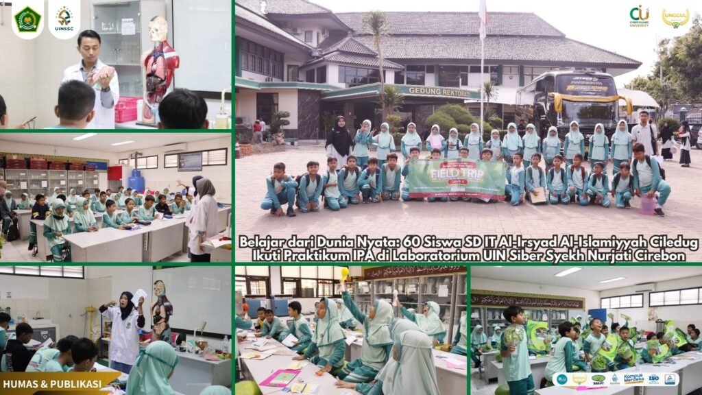 UIN Siber Cirebon – Sebanyak 60 siswa kelas 5 SD IT Al-Irsyad Al-Islamiyyah Ciledug, didampingi 8 guru termasuk Kepala Sekolah dan Wakil Kepala Sekolah, mengikuti kegiatan Field Trip Praktikum IPA di Laboratorium MIPA Fakultas Ilmu Tarbiyah dan Keguruan (FITK) UIN Siber Syekh Nurjati Cirebon. Kegiatan ini merupakan agenda tahunan yang sudah memasuki tahun ketiga. (10/09).