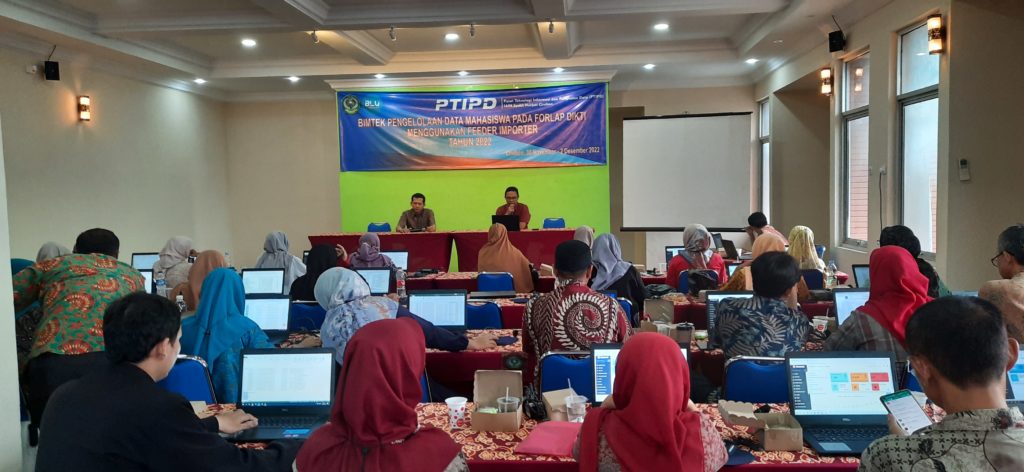 Pusat Teknologi Informasi dan Pangkalan Data (PTIPD) Institut Agama Islam Negeri (IAIN) Syekh Nurjati Cirebon mengelar kegiatan Bimtek Pengelolaan Data Mahasiswa pada Forlap Dikti Menggunakan Aplikasi Feeder Importer di Lingkungan IAIN Syekh Nurjati Cirebon Tahun 2022 bertempat di aula gedung LPM lantai 4. Kegiatan tersebut dihadiri oleh tenaga kependidikan di lingkungan IAIN Syekh Nurjati Cirebon dengan menghadirkan narasumber Mohammad Wildannudin, M.Kom (Pengembang Aplikasi Feeder Importer) secara daring. Kegiatan tersebut dibuka langsung oleh Dr. H. Darwan, M. Kom. (Ketua PTIPD) didampingi tenaga kependidikan PTIPD dan tamu undangan. Kegiatan tersebut diagendakan selama tiga hari dengan agenda kegiatan terkait Validasi Data Mahasiswa Tahun 2022 di e-Akademik, Pelaporan Data Mahasiswa Tahun 2022 di PDDIKTI dan Penugasan Dosen Homebase Luar di PDDIKTI. Rabu-Jum’at, 30 November s/d 2 Desember 2022.