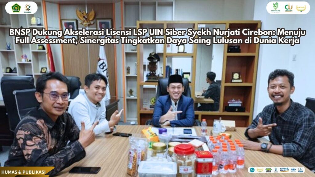 UIN Siber Cirebon (Jakarta) – Badan Nasional Sertifikasi Profesi (BNSP) menyatakan dukungan penuh terhadap akselerasi Lembaga Sertifikasi Profesi (LSP) Universitas Islam Negeri (UIN) Siber Syekh Nurjati Cirebon dalam rangka menuju tahap full assessment. Dukungan ini disampaikan secara langsung dalam pertemuan koordinasi antara perwakilan LSP UIN Siber Syekh Nurjati Cirebon dan BNSP di Jakarta, sebagai bagian dari langkah strategis memperkuat kesiapan lembaga dalam proses lisensi penuh.