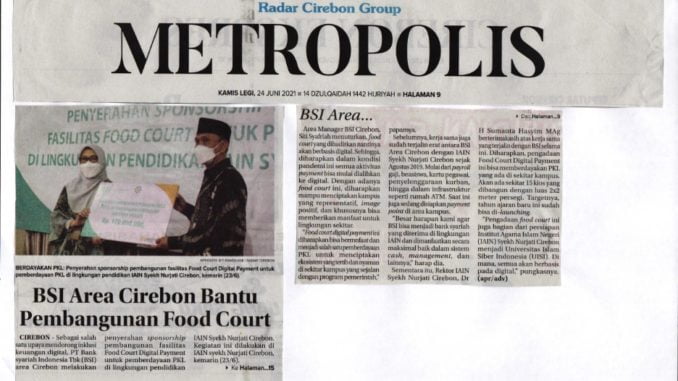 BSI Area Cirebon Bantu Pembangunan Food Court (Radar Cirebon/24 Juni 2021) 13 Oktober 2021 arifin Kliping Digital 0 BSI Area Cirebon Bantu Pembangunan Food Court
