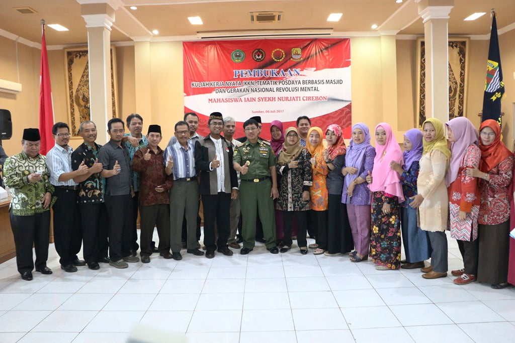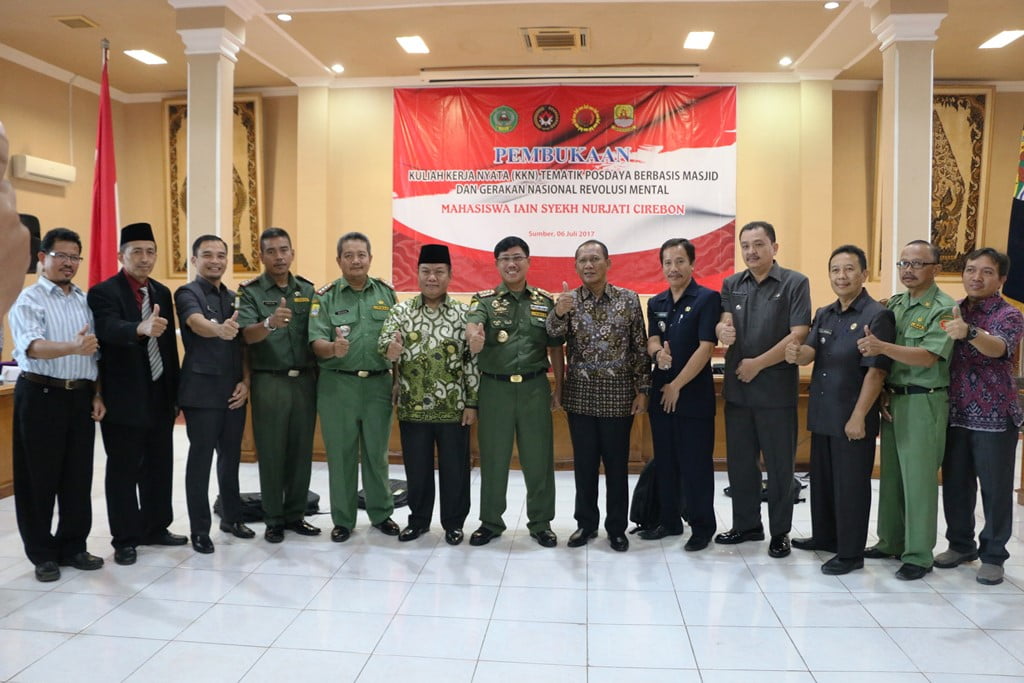 Pemerintahan Kabupaten Cirebon (Pemkab) menerima 1.462 mahasiswa IAIN Syekh Nurjati Cirebon yang akan melaksanakan kegiatan Kuliah Kerja Nyata (KKN) 40 hari kedepan. Penerimaan dilakukan langsung oleh Bupati Cirebon, Dr. H. Sunjaya Purwadisastra, MM.M.Si, yang di dampingi pejabat terkait, Kamis (6/7) di Ruang Nyi Mas Gandasari Setda Kabupaten Cirebon. KKN IAIN Syekh Nurjati Cirebon tahun ini akan di tempatkan di sembilan Kecamatan di wilayah Cirebon Timur hingga 14 Agustus mendatang. Dr. H. Wawan Ahmad Ridwan, M.Ag (Kepala Pusat Penelitian dan Pengabdian Masyarakat) menjelaskan maksud pelaksanaan KKN yaitu, untuk kepentingan mahasiswa meningkatkan kemampuan menyatu bersama masyarakat menerapkan ilmu agama terintegrasi dengan teknologi, seni dan budaya yang di pelajari secara langsung. Serta kepentingan keluarga dan masyarakat KKN Tematik Gerakan Revolusi Mental dan Posdaya untuk membantu pemberdayaan keluarga dan masyarakat melalui bidang keagamaan, pendidikan keterampilan, ekonomo/kewirausahaan, Kesehatan/KB dan lingkungan hidup untuk membangun, Budaya melayani, Budaya bersih, Budaya mandiri, Budaya tertib dan Budaya Gotong royong. Beliau juga menambahkan Tujuan Pelaksanaan KKN adalah Meningkatkan kepedulian dan kemampuan mahasiswa dalam mengatasi masaalah keluarga dan masyarakat serta melakasanakan pengembangan masyarakat melalui penyusunan rencana dan pendampingan pada pos Pemberdayaan kepada keluarga secara inovatif, kreatif melalui penerapan ilmu dan teknologi bersama masyarakat dan lembaga pedesaan lainnya, sehingga dapat meningkatkan Indeks Pembangunan Manusia (IPM) di Kabupaten Cirebon. KKN tahun ini mengemban dua Tema besa yaitu KKN Tematik Posdaya Berbasis Masjid dan Gerakan Nasional Revolusi Mental. Output dari pelaksanaak KKN ini adalah Meningkatkan kualitas mahasiswa serta adanya solusi yang bisa diambil oleh pemerintah dari permasalahan yang terjadi di masyarkat Kabupaten Cirebon.