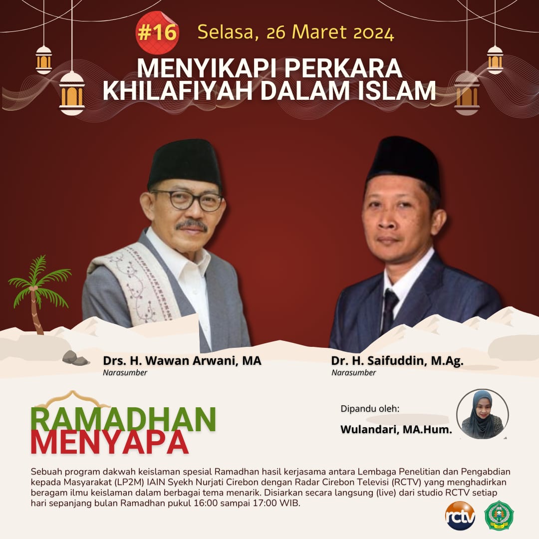 26 March 2024 • 1 Views • Program “Ramadhan Menyapa” RCTV dan IAIN Cirebon: Diskusi Inspiratif tentang “Menyikapi Perkara Khilafiyah dalam Islam” IAIN Cirebon – Lembaga Penelitian dan Pengabdian kepada Masyarakat (LP2M) IAIN Syekh Nurjati Cirebon bersama... Berita Informasi Kegiatan