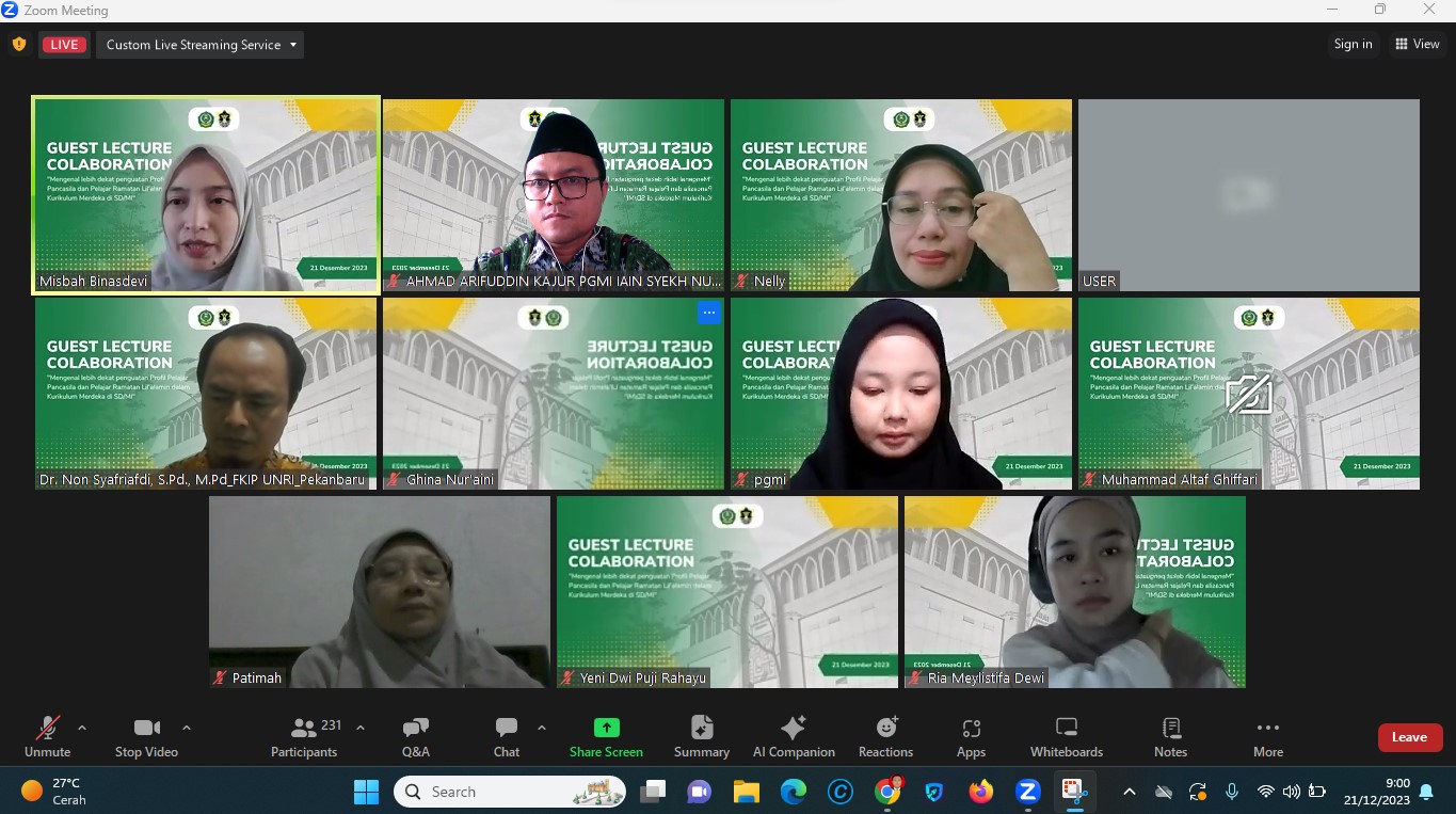 21 December 2023 • 4 Views • PGMI IAIN Syekh Nurjati Cirebon dan IAIN Pontianak Kembali Hadirkan “Guest Lecture Collaboration” Online IAIN Cirebon – Jurusan Pendidikan Guru Madrasah Ibtidaiyah (PGMI) dari Fakultas Ilmu Tarbiyah dan Keguruan... Berita Informasi