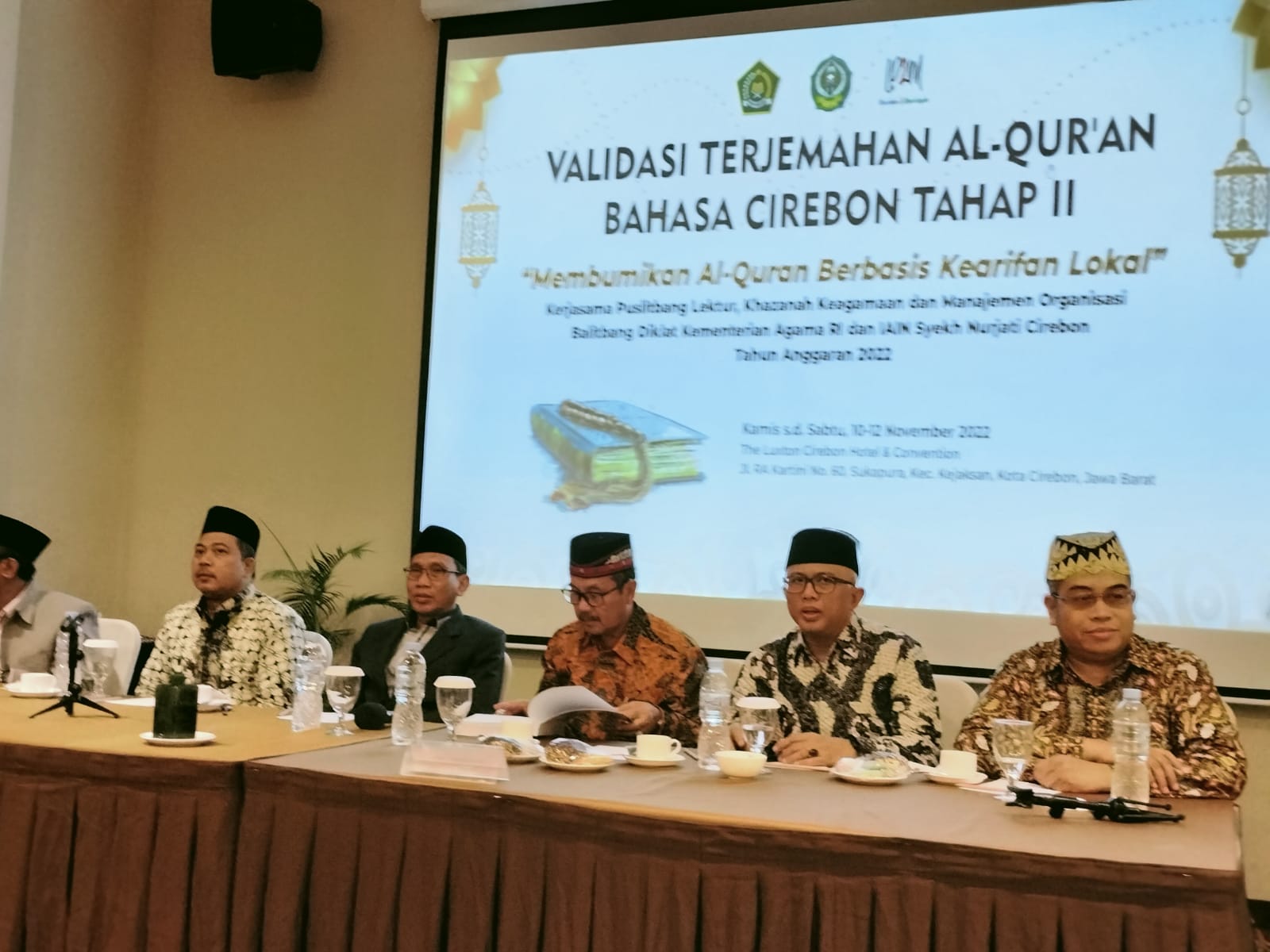 11 November 2022 • Validasi Terjemah Al-Quran Bahasa Cirebon Tahap II Lembaga Penelitian dan Pengabdian kepada Masyarakat (LP2M) IAIN Syekh Nurjati Cirebon bekerja sama dengan Puslitbang... Berita