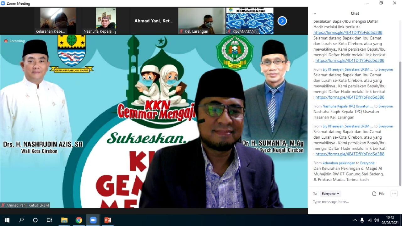 16 August 2021 • Sosialisasi KKN Gemar Mengaji kepada Camat dan Lurah Se-Kota Cirebon Lembaga Penelitian dan Pengabdian kepada Masyarakat (LPPM) Intitut Agama Islam Negeri (IAIN) Syekh Nurjati Cirebon... Berita Kegiatan