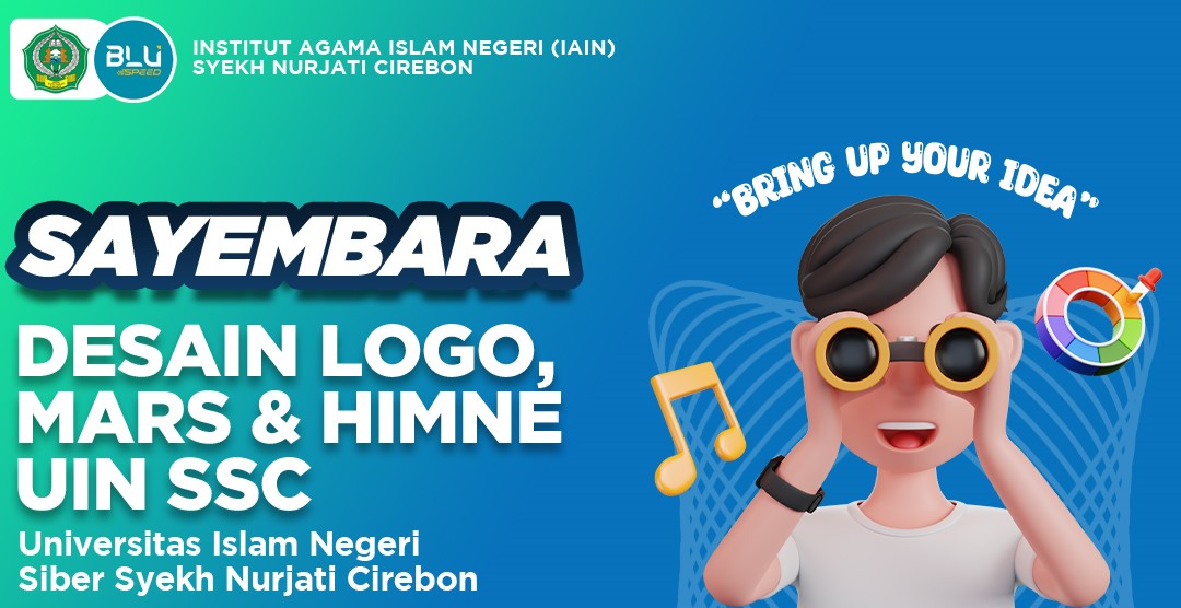 1 October 2023 • 1 Views • Sayembara Desain Logo, Mars dan Himne Universitas Islam Negeri Siber Syekh Nurjati Cirebon (UINSSC) IAIN Syekh Nurjati Cirebon menyelenggarakaan sayembara logo, hymne, dan mars UIN Siber Syekh Nurjati Cirebon.... Berita Informasi Pengumuman