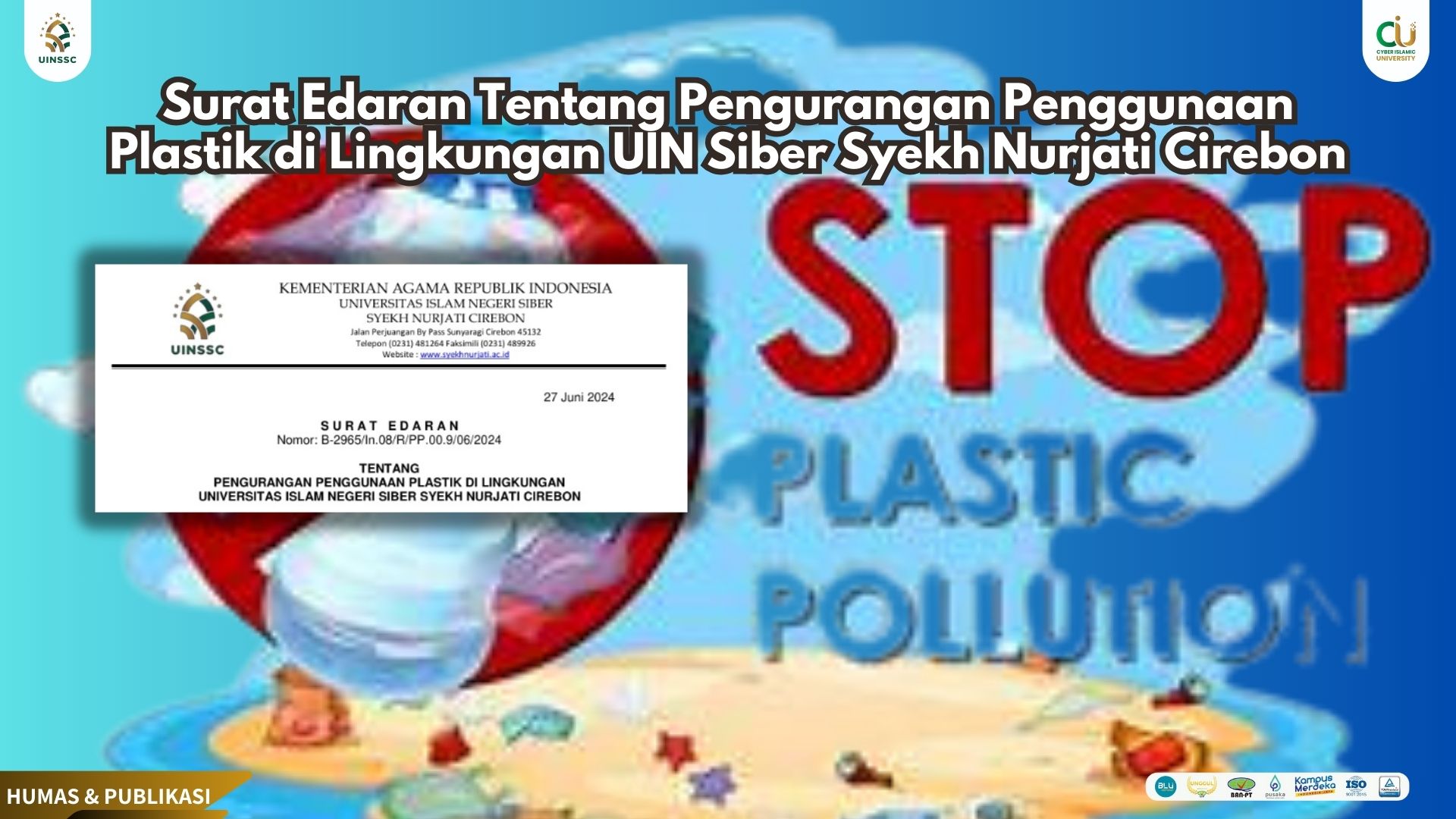 27 June 2024 • Surat Edaran Tentang Pengurangan Penggunaan Plastik di Lingkungan UIN Siber Syekh Nurjati Cirebon Untuk Informasi Selngkapnya SIlahkan Unduh Link DIbawah ini : B-2965_SE. Penggunaan Plastik di Lingkungan UIN... Informasi