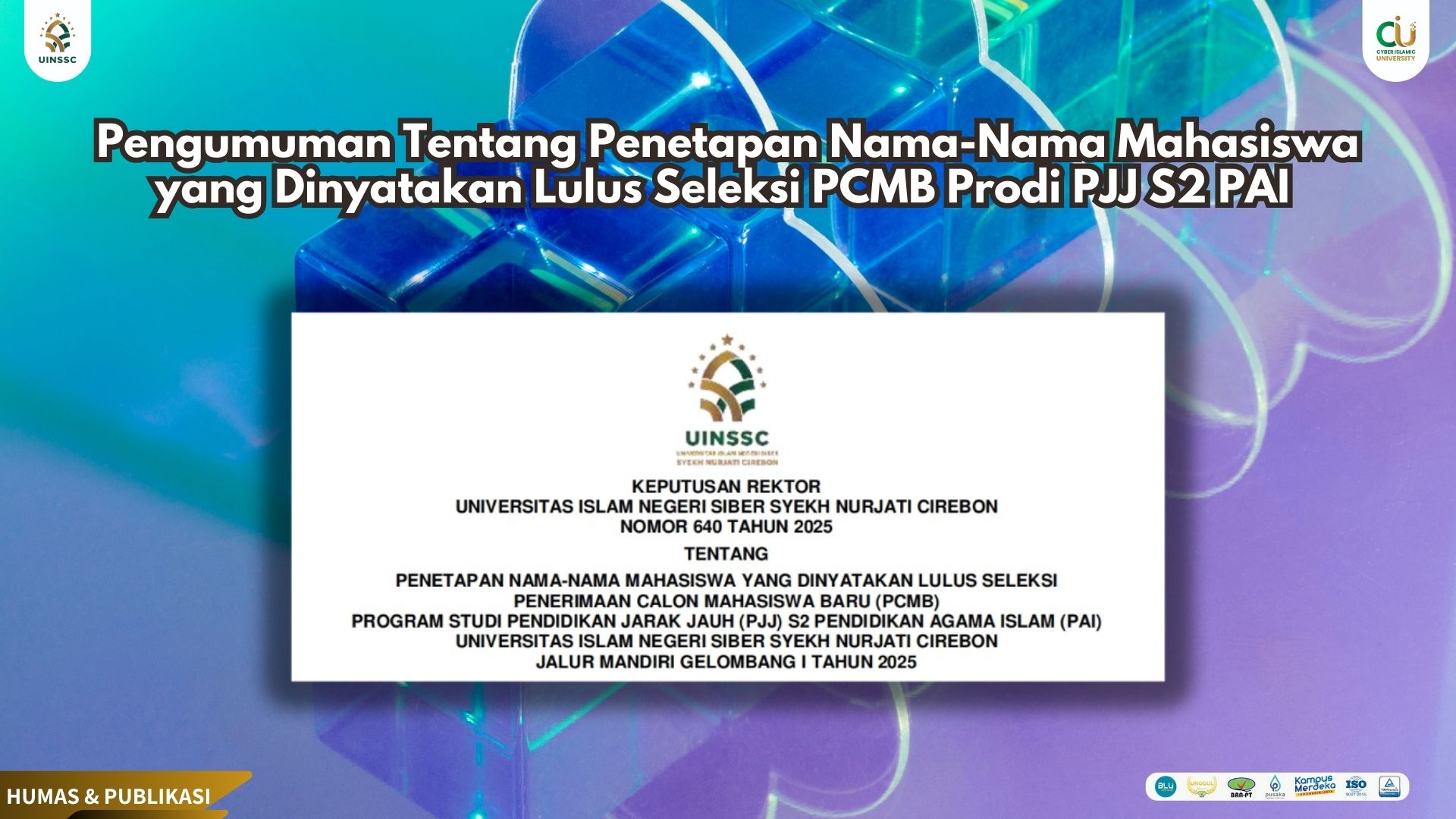 16 May 2025 • 3 Views • Pengumuman Hasil Seleksi Calon Pendamping dan Pembimbing Pratik Manasik Haji – Umroh Ma’had Al-Jami’ah UIN Siber Syekh Nurjati Cirebon Tahun 2025 Untuk Informasi Selngkapnya Silah Unduh Link Dibawah ini : _Pengumuman Hasil Seleksi Tutor Pembimbing dan... Informasi