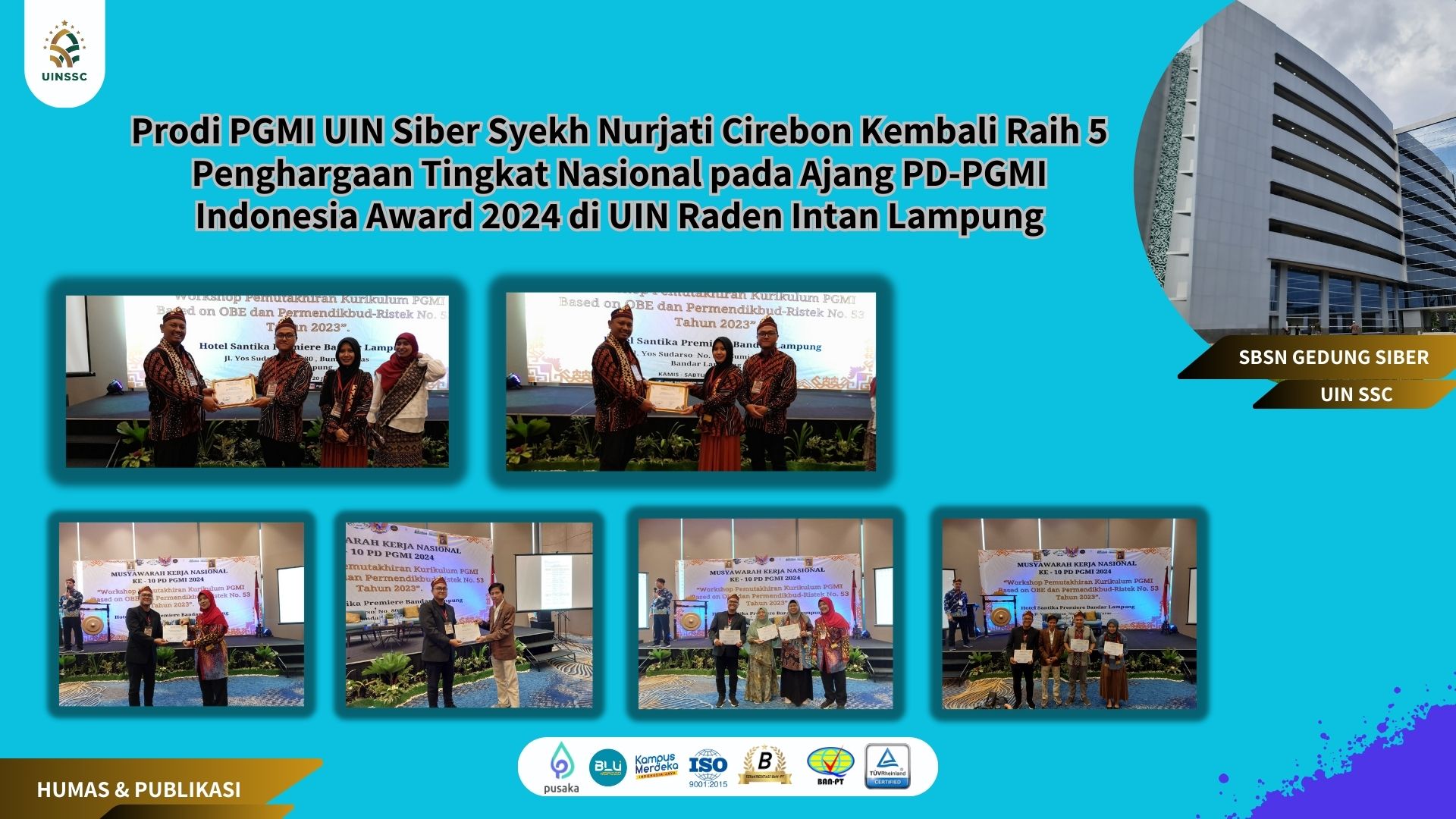 19 July 2024 • Prodi PGMI UIN Siber Syekh Nurjati Cirebon Kembali Raih 5 Penghargaan Tingkat Nasional pada Ajang PD-PGMI Indonesia Award 2024 di UIN Raden Intan Lampung UIN Siber Cirebon (Bandar Lampung) – Prodi Pendidikan Guru Madrasah Ibtidaiyah (PGMI) UIN Siber Syekh... Berita Kegiatan