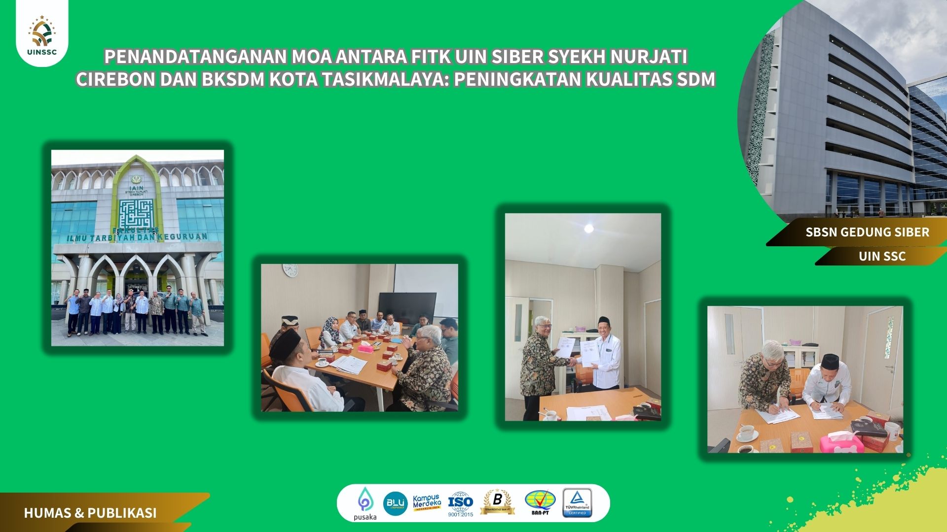 16 July 2024 • Penandatanganan MoA antara FITK UIN Siber Syekh Nurjati Cirebon dan BKSDM Kota Tasikmalaya: Peningkatan Kualitas SDM UIN Siber Cirebon – Untuk meningkatkan peran perguruan tinggi dalam meningkatkan kualitas SDM , Dekan... Berita Kegiatan