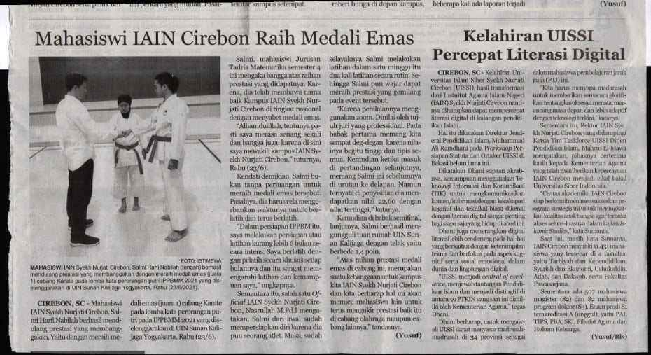 13 October 2021 • 4 Views • Mahasiswi IAIN Cirebon Raih Medali Emas (Suara Cirebon/24 Juni 2021) Mahasiswi IAIN Cirebon Raih Medali Emas Kliping Digital