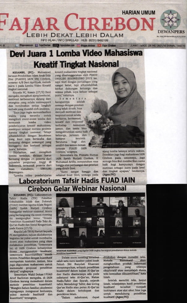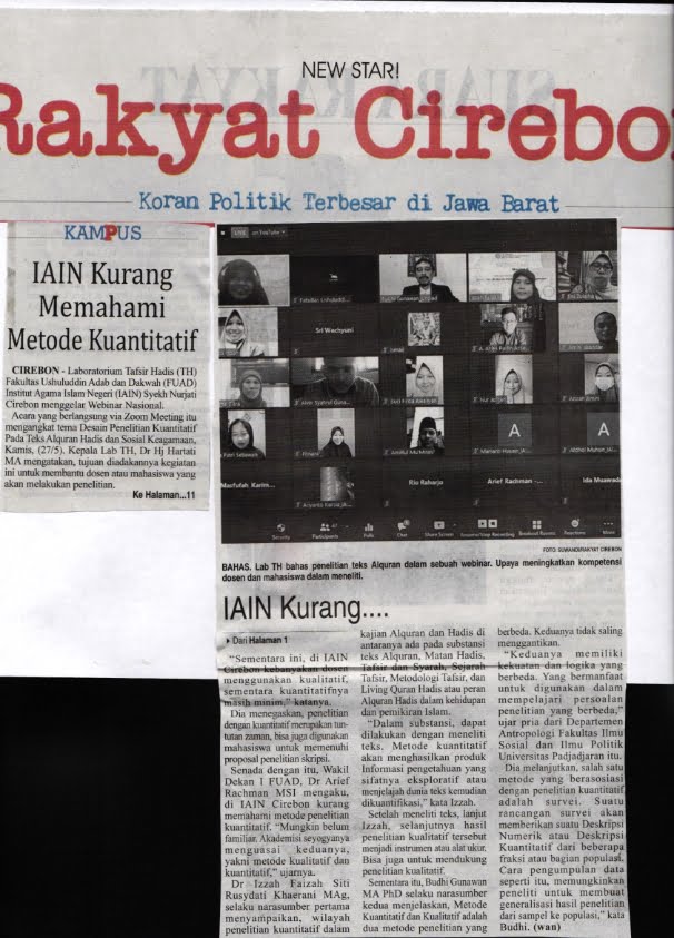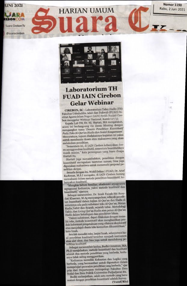 13 October 2021 • Laboratorium TH FUAD IAIN Cirebon Gelar Webinar (Suara Cirebon/2 Juni 2021) Laboratorium TH FUAD IAIN CIrebon Gelar Webinar Kliping Digital