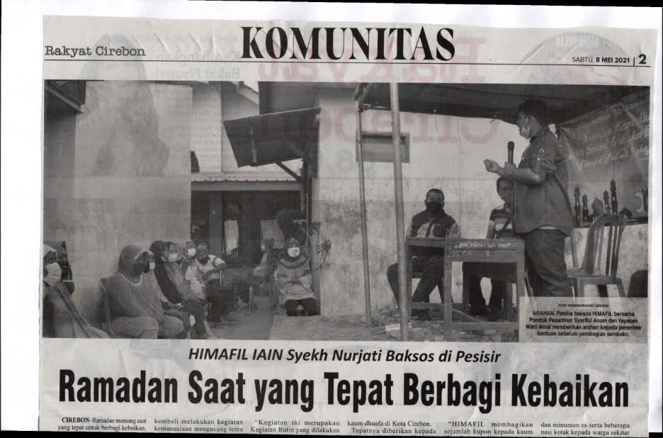 12 October 2021 • 1 Views • HIMAFIL IAIN Syekh Nurjati Baksos di Pesisir (Rakyat Cirebon/8 Mei 2021) HIMAFIL IAIN Syekh Nurjati Baksos di Pesisir Kliping Digital