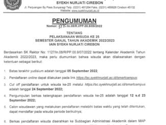 Unduh Pengumuman PENGUMUMAN WISUDA KE 25 Link Pendaftaran SMARTCAMPUS IAIN SYEKH NURJATI CIREBON Blanko Ceklis Pendaftaran Wisuda BLANKO CEKLIS PENDAFTARAN WISUDA 2022